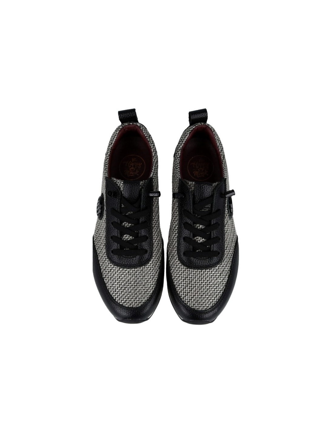 Sneaker de mujer fabricada en piel color negro con espiga tejida. cordones elasticos, plantilla extraible y suela de goma antideslizante.
