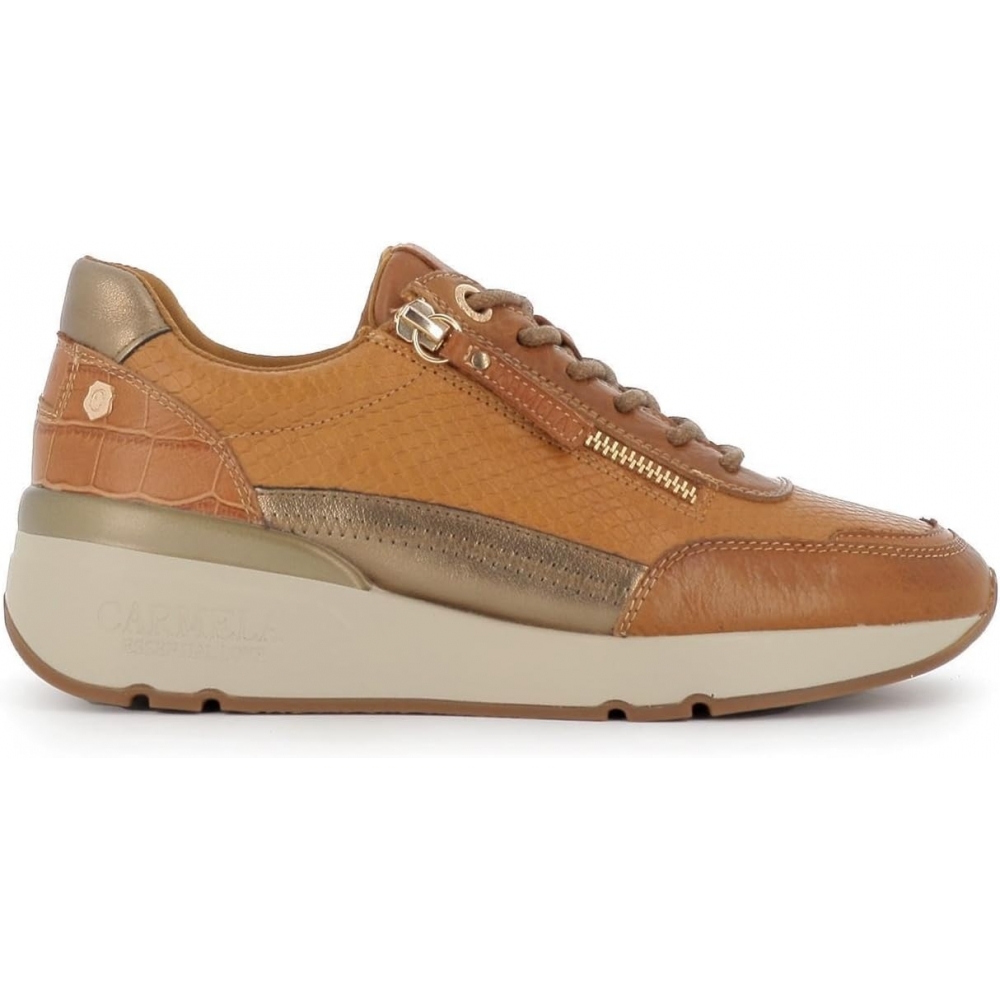 Mocasín de mujer, de la marca Carmela. Fabricado en piel de alta calidad. Cadena decorativa en el frente. Suela dentada antideslizante.